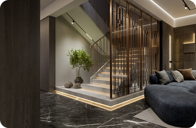 Our client stressed privacy was a key concern so we implemented electric shading to their residence. This allowed them to set their shades to automatically close and rise based on the time of day, or they can have them rise or lower with a simple touch of a button or voice command. This gave them them privacy with class.